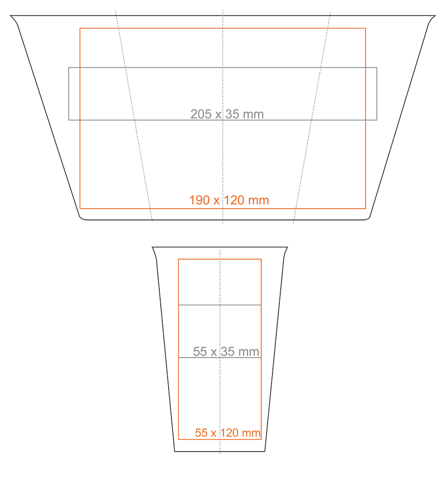 * W przypadku projektów wybiegających poza standardową powierzchnię nadruku prosimy o kontakt z działem handlowym.